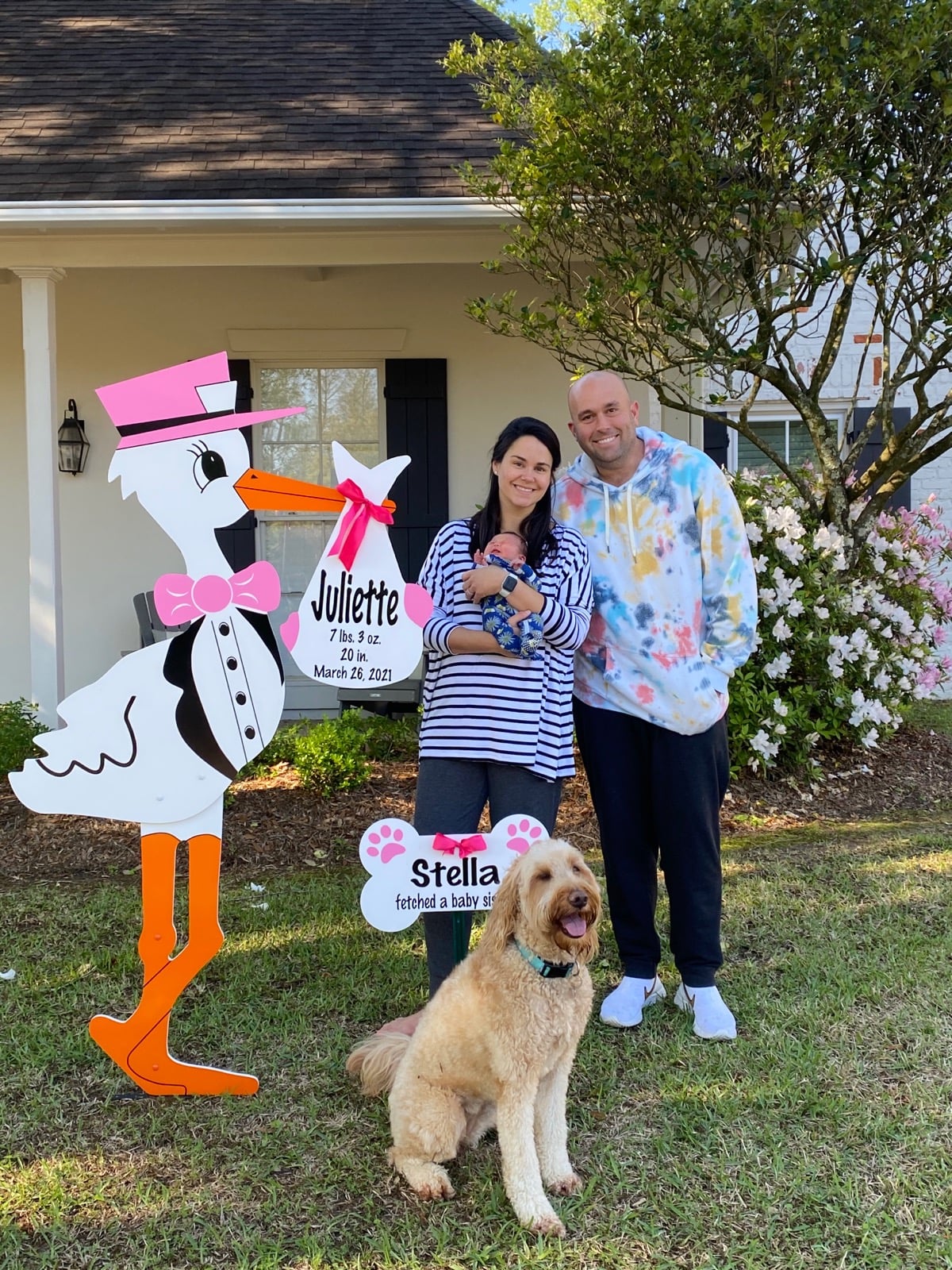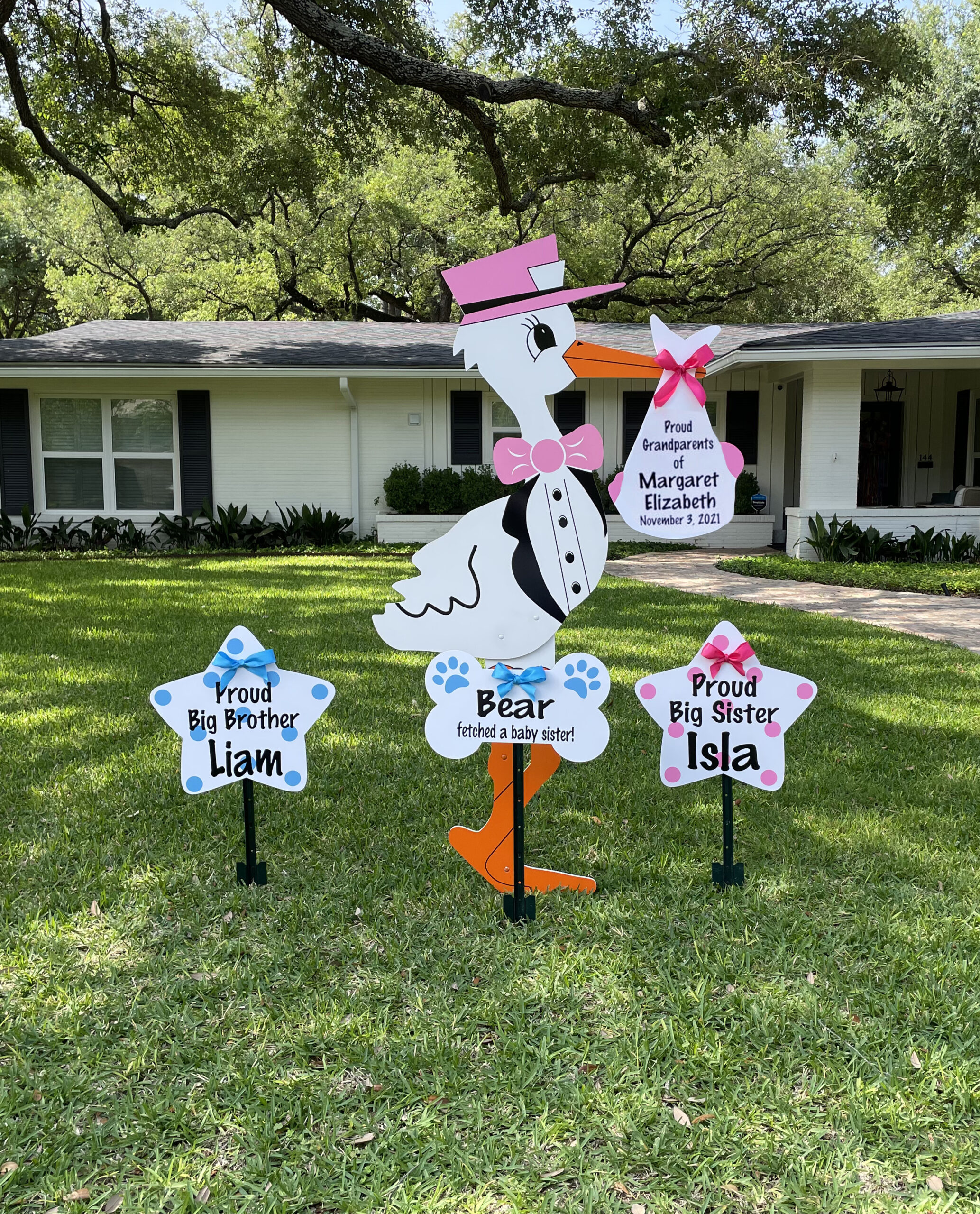 Grandparents can join the excitement by renting a stork sign to announce their newest grandchild to friends and neighbors.